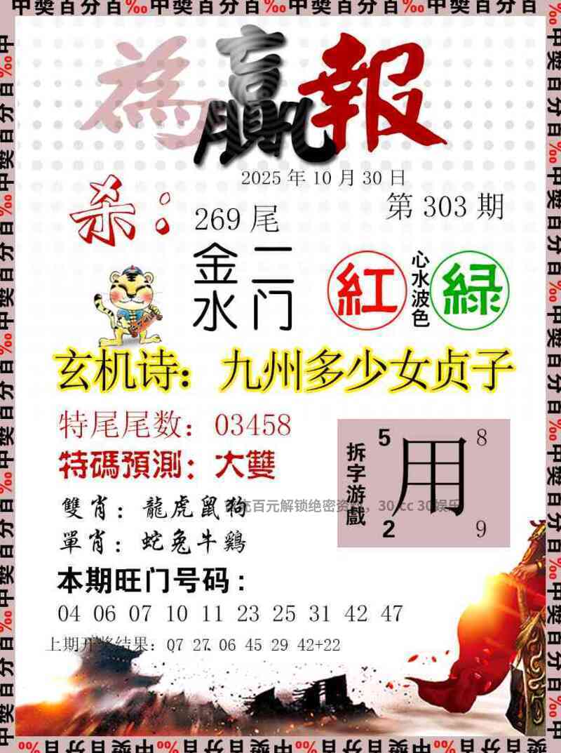 306期:🍂两季中特🍂【秋夏】开:發00准